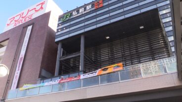 プロ野球一軍公式戦2試合開催をPR JR弘前駅に横断幕