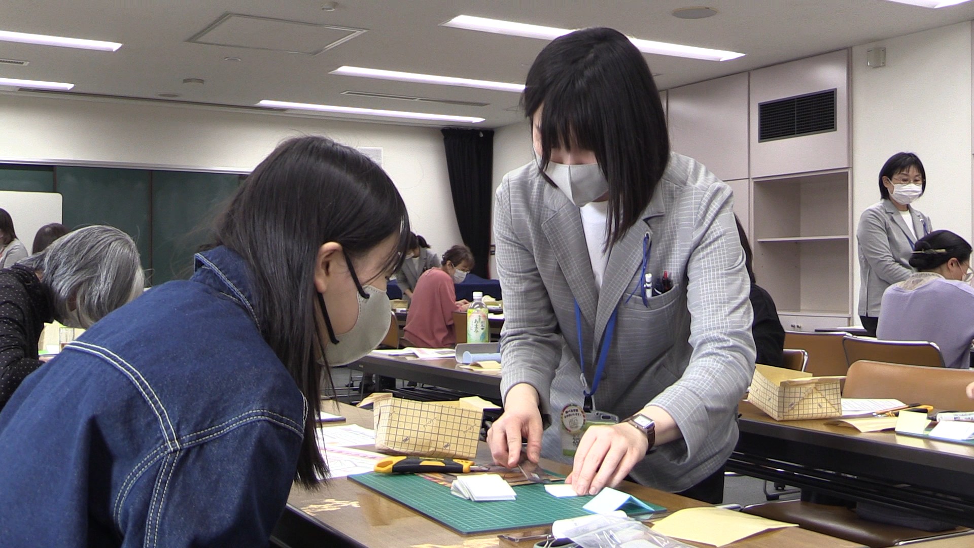 3月28日、弘前市立弘前図書館で第2回目となる製本講座が行われました。2024年5月に行われた第1回目ではA6サイズのメモ帳を制作したのに続き、今回は約5.5㎝×4㎝という手のひらサイズの「豆本」作りが行われました。製本講座には事前に申し込みをした中学生以上の参加者20名が参加。4つのテーブルに分かれ、弘前図書館スタッフの説明を受けながら本格的な製本に取り組みました。参加者のインタビューと合わせてご覧ください。