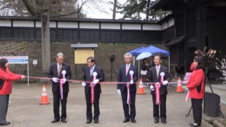 またセレモニーの後は桜守がガイドするツアーが行われ、来賓などに桜の樹高を低くしている理由や弘前七輪咲き桜などについて桜守の橋場さんが解説しました。谷川市長へのインタビューの様子や公園西濠・外濠北側の桜の様子と合わせてご覧ください。