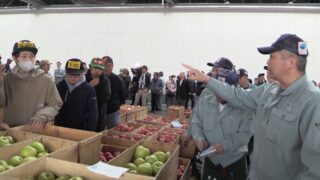 この日お邪魔した園地では、早咲きの王林が霜の被害を受けたものの、ほかの品種の生育はおおむね順調とのこと。