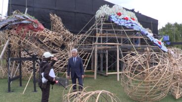 大雪像の前で開会式 弘前城雪燈籠まつりがいよいよ開幕